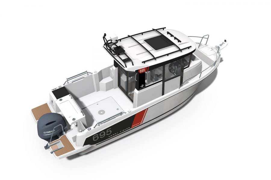 Merry Fisher 695 Sport, like all the Sport models, are characterised by an inverted windscreen and a walk-around deck plan.  Safety, performance and fuel efficiency are assured in this range by an excellent level of security on board, a proven hull and an outboard engine.  The range features a contemporary, adventurous spirit, inspired by Scandinavian style and adapted to meet the expectations of our customers around the world.