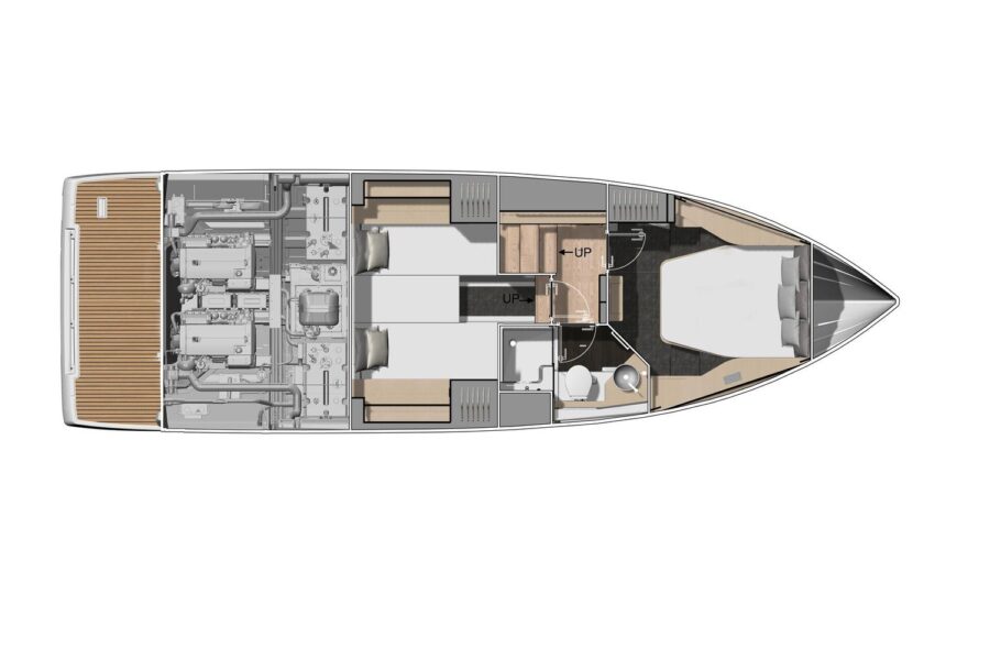 Continuing the design concepts that made the DB 43 a success, the DB 37 provides a fantastic deck plan with lots of exterior space; plus folding side terraces to extend the cockpit area and give easy access to the water whilst at anchor.