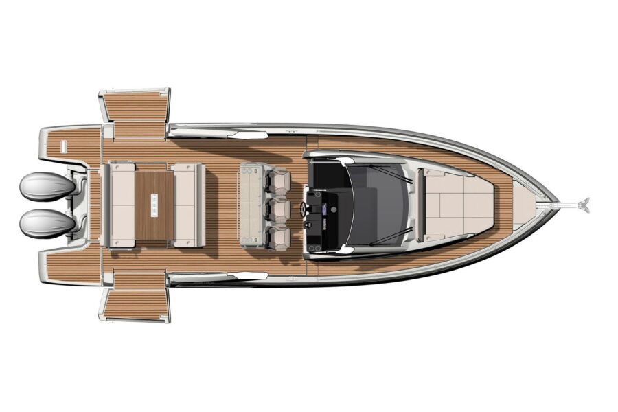 The hull (designed by Michael Peters), has elegant lines and excellent handling. Available in both inboard sterndrive engines or outboard engines; up to a maximum of 2x 450hp!