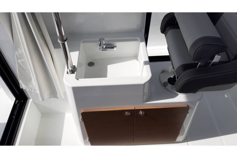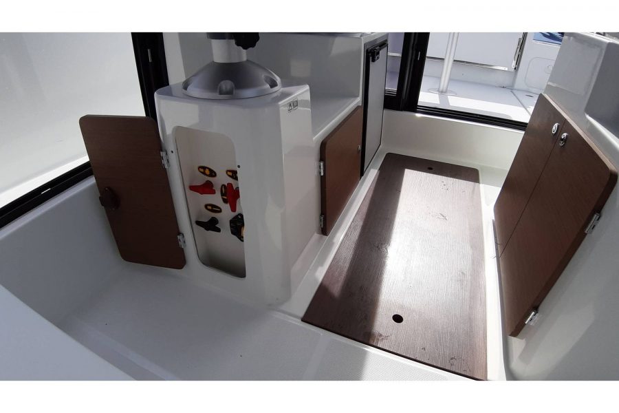 On the exterior, there is a spacious aft cockpit that is entirely modular – an open space for fishing or, with a quick change, you can have cockpit with table or sundeck. The excellent safety features, a proven hull that is stable and fast, and single or twin outboards ensure safety, performance, and fuel efficiency when on-board the Merry Fisher 795 Sport.