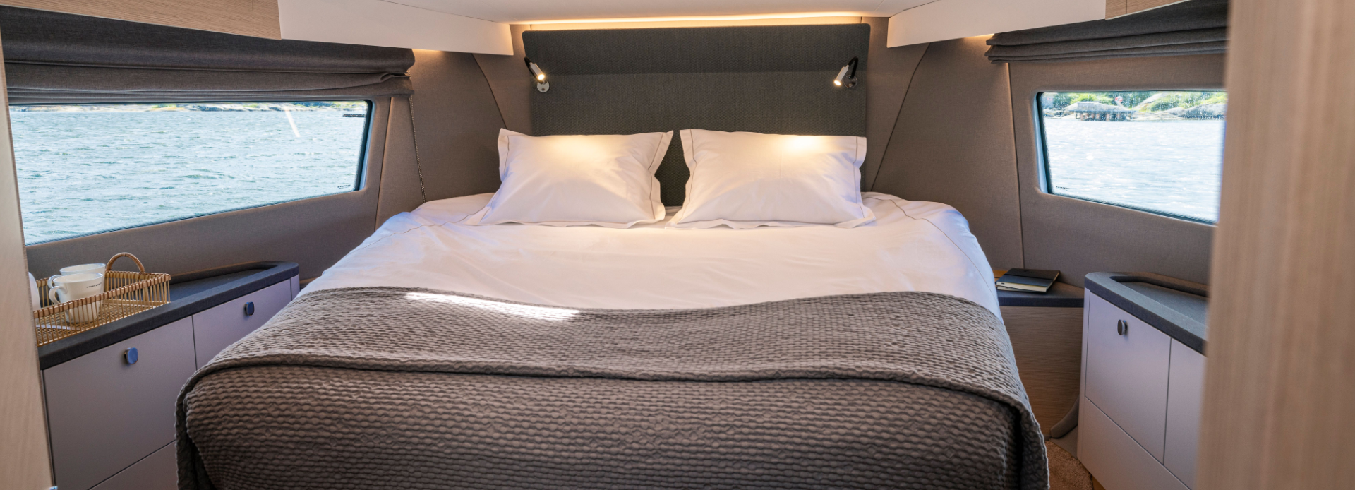 Below deck, the 495 Flybridge offers a three-cabin layout including a full-beam master suite, generous guest cabins, and two beautifully appointed bathrooms, making long stays onboard feel effortless. Every detail, from the choice of materials to the flow of movement onboard, reflects Nimbus’s signature Scandinavian design philosophy: simplicity, functionality, and beauty in equal measure.