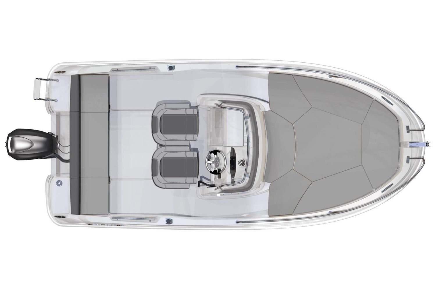 The Cap Camarat 5.5 CC benefits from the latest innovations in style and ergonomic design. With her tapered V-shaped hull, her excellent handling at sea is ideal for pretty much any kind of water sport, or just plain cruising. This boat can reach respectable high speeds, (with planing speeds of more than 30 knots due to its light weight and hull design), while remaining comfortable and fuel efficient. The sculpted console reinforces the overall style with an ergonomic design at the helm, directly inspired by previous designs.